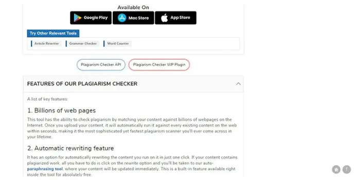 - Allows users to check plagiarism for free