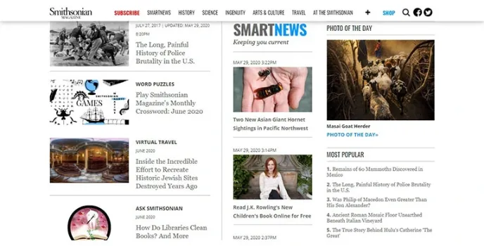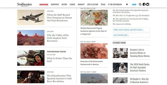 The Smithsonian Magazine features various stories on breakthroughs and instances of the past. It helps the readers and subscribers understand and appreciate, and even love the people who make it all happen today.