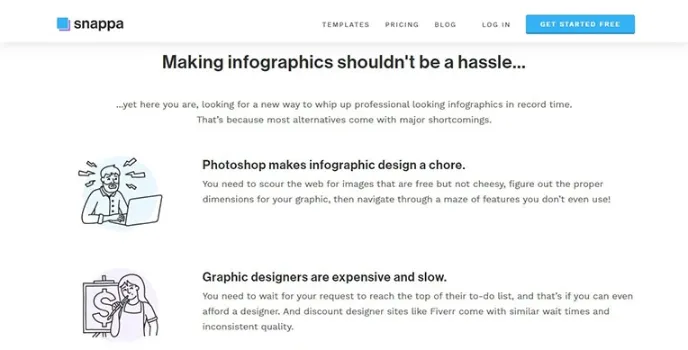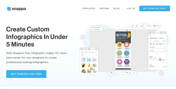 Looking for image editing softwares makes infographics hassle-free by giving a new way to whip up the professional-looking infographic in record time. Choose Snappa, an interactive chart and map that works best for startup businesses by giving customizable graphics, shapes, and text.