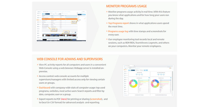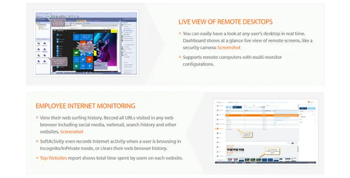There are more packages of this software from ActivTrak and iMonitorSoft, which are similar to the ones from Soft Activity in their functionality and performance. The software packs here all have free trials to let the customers have a look at how this works and its functions.