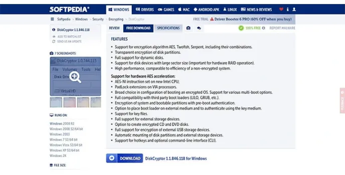 Softpedia encryption software online is compatible with multiple disks and supports the AES, Blowfish, Serpent, etc. It is more compatible than non-encrypted software. And the full support to the dynamic disk storing the large encrypted files.