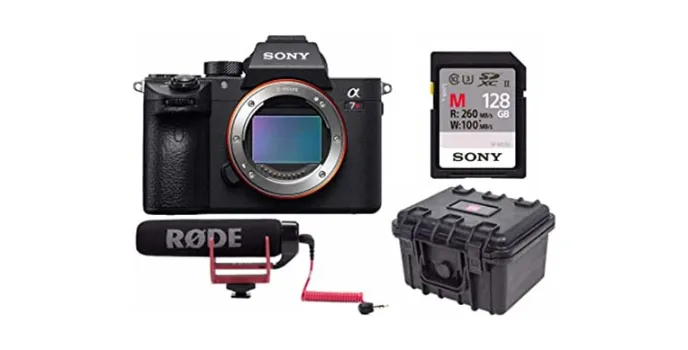 The Sony a7R III camera is a lightweight piece with a shoe mount and a suspension system. Furthermore, it supports a 128GB SD card. Hence, you can click and store as many photos and videos as you want. It eliminates the hassles of โrunning short of memory,โ which is an issue with most cameras. In addition to this, it has a weatherproof hard case.