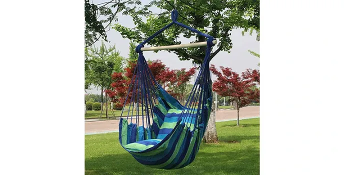 Sorbus' hanging hammock chair will bring you comfort wherever you go. It is highly rated that one can hang it anywhere with ease. It also greatly adds to the balconies, backyards, and decks are highly portable, and the perfect choice for lounging in the evenings. As this is constructed with sturdy polyester and cotton fabric materials