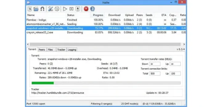 Halite is a light-weighted and best client torrent app equipped with features like a magnet torrent queue system, super-seeding, and the efficiency to create torrent files within the client software. This open-source tool aids in instant downloading of torrent files via the BitTorrent protocol and can run on computers with less than 1GB of RAM. The torrent clients for windows works the best on Windows 10 with the torrent information displaying visibly at the footer of the Windows.