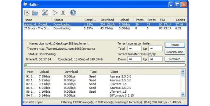 Earlier Halite was programmed to run only on Windows 32-bit operating systems. In recent times, Halite has been updated and works great on 64-bit Operating systems. The client app comes with decent features for downloading and sharing torrent files which makes it a primary tool for beginners. Another benefit of adapting to this tool is its ability to run the torrenting apps effectively on the iPhone app. The user interface is simple, allowing the users to navigate around the app without much difficulty.