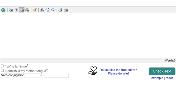 You are a pro at creating Spanish content. But still wonder about the grammatical errors. Check the editor feature of SpanishChecker that will allow you to develop error-free content with complete ease. You can either copy-paste your write-up in the available box to check its efficiency, or you can directly create the content in the box for the grammar check. Spelling errors are also rectified with the editor of the tool.