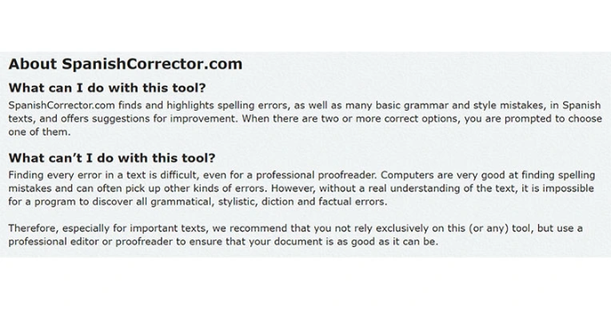 One of the most popular languages across the world is Spanish. It is a worldwide spoken language, and hence the need to have an online free grammar checker tool for the language is essential. SpanishCorrector is one of the best tools that allow the users to correct their text, be it spellings, writing style, or grammar.