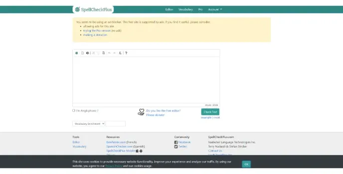 SpellCheckPlus is an AI grammar checker used for writing clear and error-free content. Content can be directly typed, or pre-written content can be copy-pasted into it to inspect for spelling or grammatical errors. The SpellCheckPlus app can also be downloaded for free on Android and iPhones. It also has a Pro subscription for users that wish to unlock advanced features and have an ad-free experience.