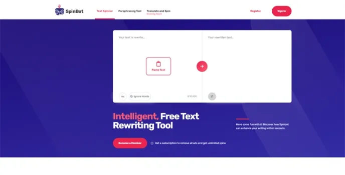 Spinbot, a free high technology-powered content snipper, is the one-stop solution for all bloggers and website owners to generate high-quality content for their website instantly. This AI paper writing tool will rewrite the content into very readable and intelligent content as per Google content guidelines. Spinbot will transform the original content into a structured, user-generated, high-quality format using ai technology.