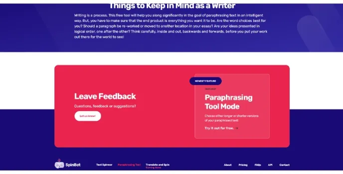 There is no doubt Spinbot is the most popular paraphrasing and spinner tool, but you can also check Word AI and Frase AI as alternatives to Spinbot.