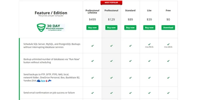 These best database backup softwares offer the best deals for the customers for better storage and facilities. The deals offered are affordable and worth purchasing. They start from free to certain amounts, which offer the lifetime backup option for you.