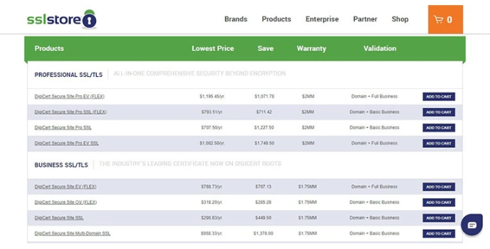 It is also listed among the best websites to buy SSL certificates focusing on SSL services.SSL provides access to renowned brands like Digicert, COMODO, Geotrust, Thawte, RapidSSL, and few others. This trusted entity's services are domain SSL validation, multi-domain SSL validation, Extended SSL validation, Wildcard SSL, and Organization Validation SSL. No matter how many domains you have, SSLstore protects all its domain validation services without imposing restrictions.