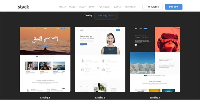 Stack comes with hundreds of layouts with multiple fonts. It ships up to 140 content layouts, including 30 tailored niche homepages and much more. Templates allow website designing with ease.