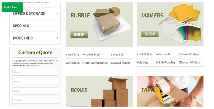 It also has a tape shop that helps to easily wrap your shipment. It offers color-coded tapes, masking tapes, and filament tapes also. Stretch cushioning shops ensure that your product is well packed with air pillows, foam wraps.