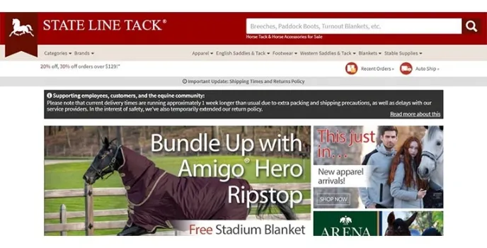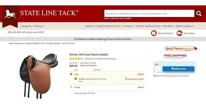State Line Tack website provides you with a beautiful and exceptional shopping experience to the clients through its easy-to-use website navigation system. It is stuffed with quality equine products and accessories. Navigating through the website is simple and straightforward that displays the main category of production. Its broken down subcategories help locate the products precisely, and it also provides the ability to filter the products based on the prices, sizes, and brands to get all your gears for horse ridings.