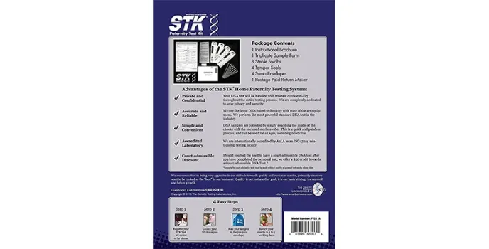 The STK's Home Paternity Testing Kit is an at-Home DNA Testing Kit that identifies your Genetic Ethnicity. SKT's Paternity DNA Kits utilizes the latest DNA-based technology and offers accurate and reliable reports. These Ancestry DNA Kits verifies almost 16 DNA and Loci 3 for its paternity Testing procedures. A2LA testing facilities internationally qualify these kits. The entire Lab Costs is inclusive of the Kits rate, and one can utilize the Kit for a single suspected father and a child.