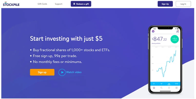 Taking inspiration from e-commerce services, Stockpile is one of the best online stock broker for beginners and also provides gift cards. These gift cards are redeemable, and you can give them to anyone. Furthermore, to use them, users don't need to create an account.
