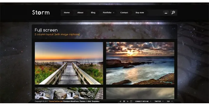 Storm photography is an awesome full-screen background template. It also has a custom full-screen gallery which is perfect for showcasing visual work.