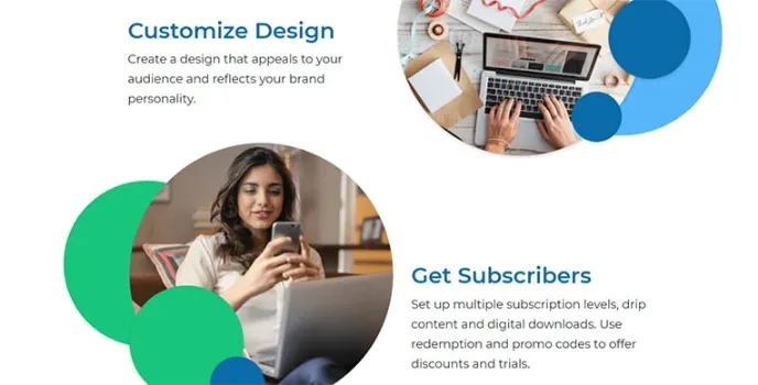 With this platform, users can set up multiple subscription levels, drip content, and digital downloads. They can also use redemption and promo codes for offering different discounts and trials.