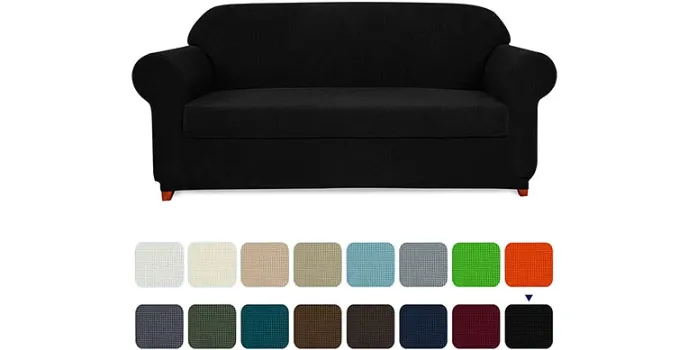 Subrtex is the best couch cover made up of polyester and SpandexSpandex It is made using high-quality materials that offer great features of elasticity and flexibility. These covers have different varieties and sizes; a 3-piece sofa includes three parts, wherein one is the base slipcover, and the 2 are cushion slipcovers.