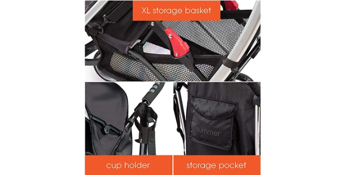 Summer Infant features users with an open design and a simple recline seat that lays flat, ideal for napping. Users can easily adjust the seat's height, including a safety harness. These seats are manufactured with additional padding that helps your baby seat comfortably. The baby furniture also comes with plenty of storage, like a large storage basket, cup holder, and rear storage pocket, enabling parents to put all the important stuff while going out of the home. The large, adjustable canopy, which is considered one of the best features of the stroller, can save your baby's sensitive skin from harmful sun rays.