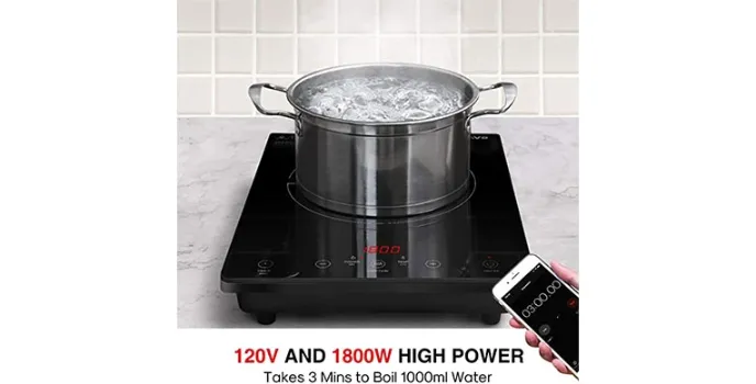 The portable cooktop of Sunavo comes with high-powered electromagnetic coils allowing the sunavo induction cooktop to heat up quickly and evenly. The reels are fitted with 1800W, and it takes merely three minutes to boil 1000ml water. In no small measure, the sunavo induction cooktop is four times faster and efficient than the traditional cooktops.