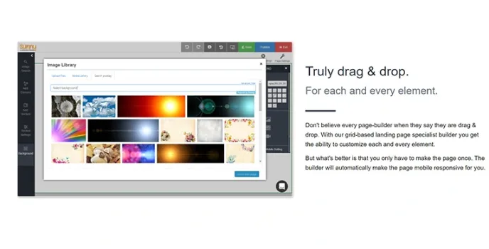 The Sunny Landing Page Builder is one of the best Html Landing Page Builders, providing the best pre-built templates and pages. These templates and pages are in default mobile responsive. Hence they need to be built just once. You can utilize the ready-made content section templates for creating your Business portfolio, pricing tags, team information, header, footer, and many more.