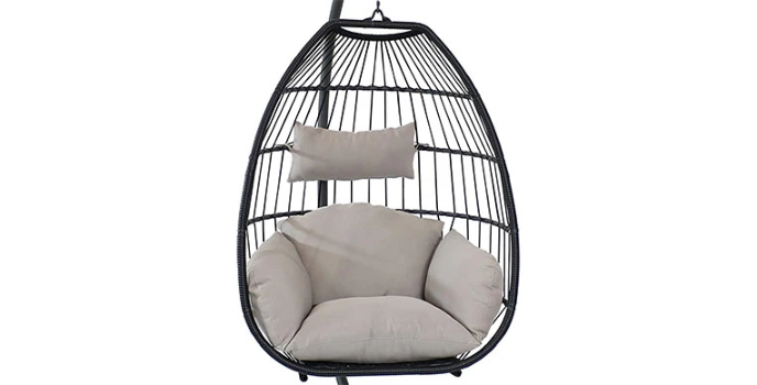 Swing chairs are aesthetic furniture in outer space, but essentially with preferable material and accessories, they could be placed anywhere in the house, such as in the living room, patio, garden room, etc. The best egg chair swings, like the Sunnydaze egg chair, have a stand to support the hanging of the seat as well as prevent any manual installation.