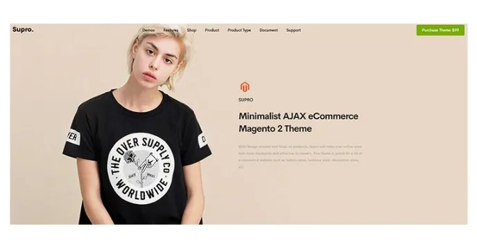 Clean and minimalistic design Magento theme Supro is curated with the standard UI and UX designs and magnificent focus on products for online stores and makes your online store look more attractive and impressive to viewers and helps in increasing your purchase conversion rate effectively, and it is designated to serve more ecommerce website such as the fashion store, decoration store and furniture store, etc.,