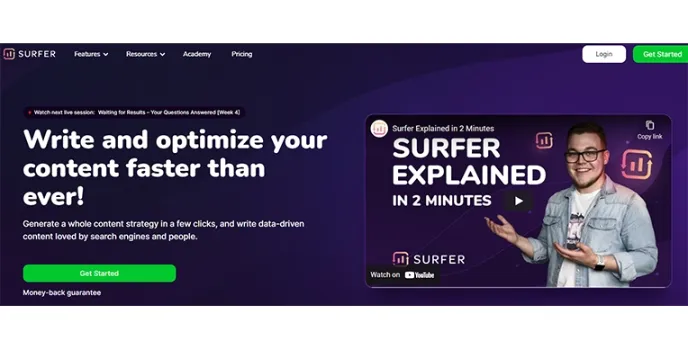 Additionally, surfer lets your websites outrank and next level to competitors. They also provide a chat support team and a money-back guarantee for a better experience.