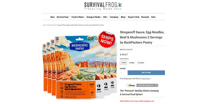 Most people in emergency crises or any natural disasters will not have an opportunity to have a portion of fresh and healthy food in those critical situations. To tackle all those uncertain situations, bring home the best stroganoff emergency supply kit from Surviving Frog. It is packed with freeze-dried beef and superior quality noodles that will keep you going strong and makes the favorite choice for outdoor activities than Russian Army and SpecpIT.