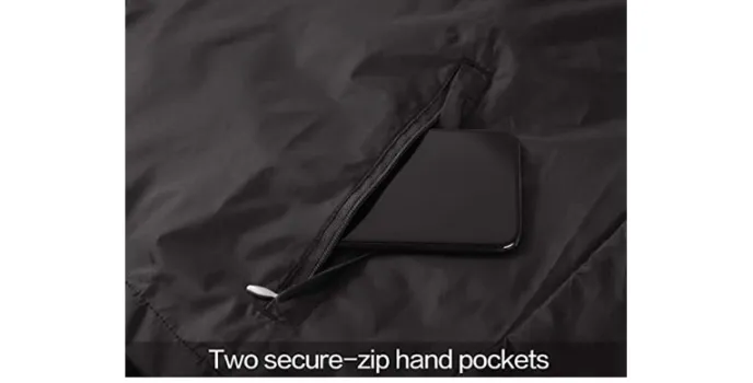 The hood configuration is flexible to avoid rainy weather. The zip-out heater made the coat suitable for the wet and cold summer season. The phone, keys, money, card, and other small items are secured from two zipper hands.