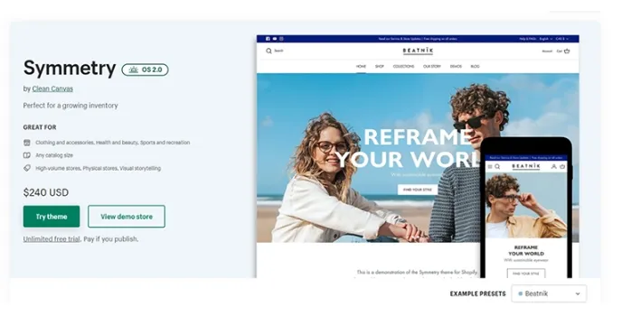 Symmetry - Unlimited Free Trial Converting Shopify Theme At Anytime