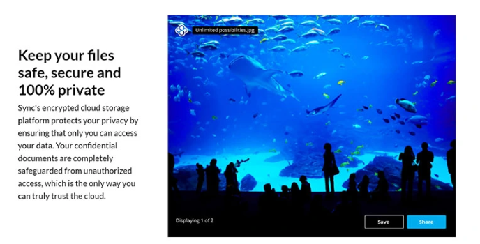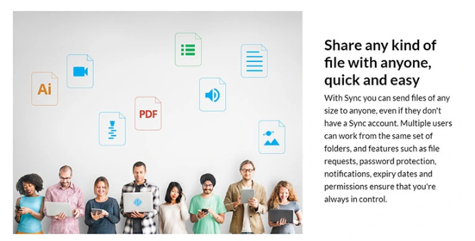With Sync.Com, one can share any file - be it images, videos, PDFs, audios, or anything else. It is not necessary that the person one is sending the file to needs a Sync account. Thus, it enables multiple users to work on the same set of documents simultaneously. And, this makes it the best online cloud storage platform.