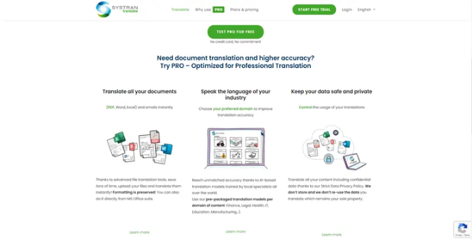 Systran provides advanced translation tools that offer translation services while maintaining the document's original formatting. The user can translate the whole document in one go. It is considered one of the best English to Spanish translation apps for maintaining unmatched accuracy and artificial intelligence-based transactions.