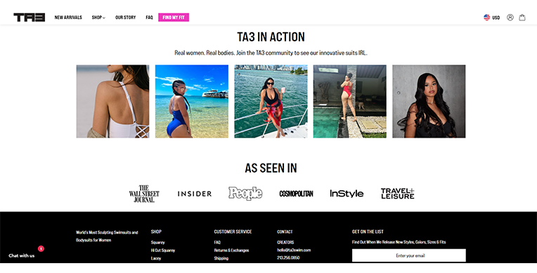 The aim of TA3 Swim is to provide the best and premium-looking swim outfits or bodysuits that make every woman confident and comfortable. The brand's founder is a famous fashion designer and has famous celebrities as clients. After years of experience crafting various fashion outfits, she wanted every woman to look good, even in swimsuits, and that idea led to the creation of TA3 Swim. Along with product style, it has the finest quality, which adds an extra edge to go forward and buy it.