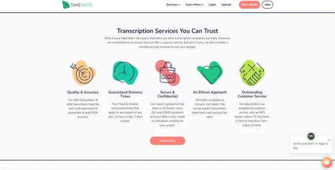 Take Note has a wide variety of Audio Transcription Services that you can trust. These include Verbatim and Intelligent Verbatim. They see our people as human beings, not robots. So, they hire expert copywriters, treat them well and pay reasonable prices.
