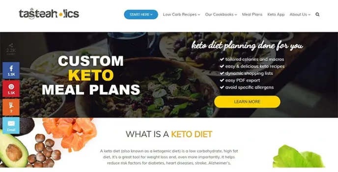Tasteaholics are the best for those who want to do the keto diet. The site offers you all diet plans as per keto standards. From morning breakfast to dinner, they have recipes for every time.