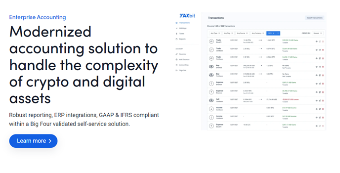 TaxBit is one of the most reliable crypto tax software that will let you know about the real-time tax impact of your transactions across any exchange. It is considered one of the leading providers of Form 1099 in cryptocurrency. Also, TaxBit is the very first company to build real-time ERP accounting software for several digital asset investments. So, if you require end-to-end solutions like a core accounting suite, customer management suite, etc., you should consider TaxBit.
