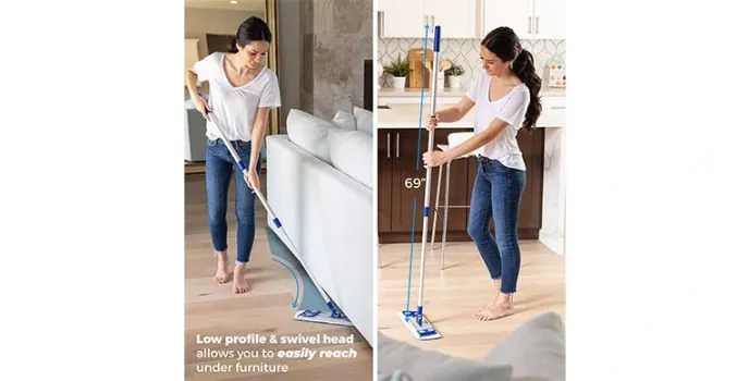 Temples Pride has taken hard floor cleaning to the next level with their exceptional hard floor cleaner mop that undoubtedly makes it among the best hard floor cleaner mops. It makes for this professional microfiber mop that has been uniquely made to work wonders for hard tiles and also soft floors. This enables extremely easy handling with easy to put on and take off pads with that of hooks and loop strips to put it precisely. Comes with a well gripped handle that is easy to adjust and this helps reduce strain. Using this hard floor cleaner mop effectively helps remove pet hairs and other accumulated allergens on the floor including dirt, dust and other impurities which helps you maintain hygienically clean floors that are sparkling to say the least. This product claims to be environment friendly which enables it to last for a longer duration.