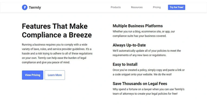 Termly - Comprehensive Tailored Made Legal Policies For Customer