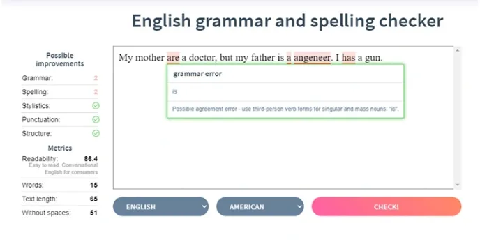 Apart from detecting errors and correcting them, It also finds stylistic errors. Moreover, Textgears helps in considering dialects. It is the Best Grammar Checker Online that determines the readability of texts according to industry standards.