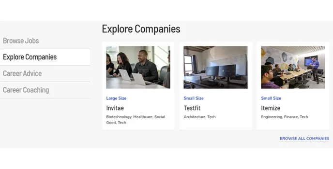 Beginners often find problems in taking challenges because of many failures sometimes. There are many job portals for startup jobs that help the candidates looking to take on challenges. Themuse is the website that also helps in customizable job alerts with notifications. The candidates can upload their biodatas and start looking for their matching jobs according to their experience and skills and would get quick notifications regarding the same.