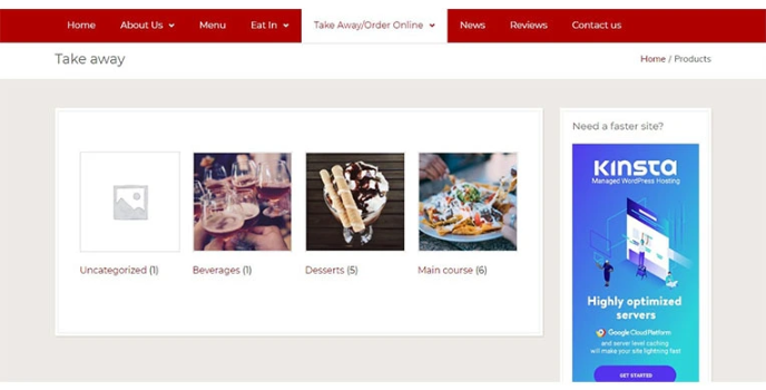 There is a sliding menu card in the theme that will certainly impress your customers! Create and display various categories, as on a paper menu card, side by side. This is the theme, which has such functionality incorporated!