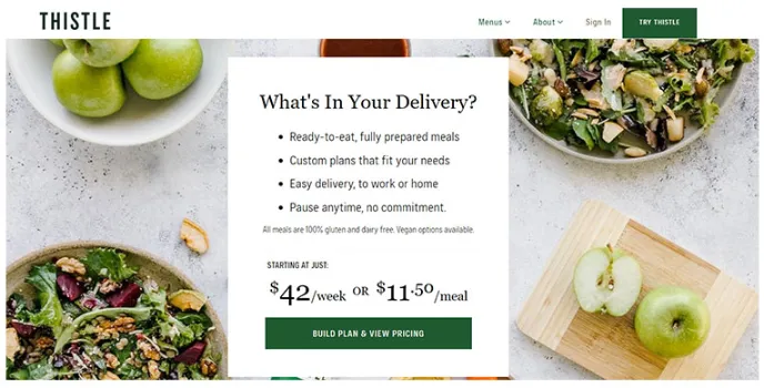Meal delivery is easy with Thistle. You can have your delivery at your doorstep. The delivery operations are available across California, some parts of Arizona, Washington, Idaho, Oregon etc. Daily harvest and Urban remedy are other meal delivery services which have the similar features.