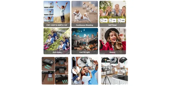 Capture memorable moments with Toberto's digital camera for kids. Perfect for kids, this easy-to-use camera fits right in your kid's hands and provides endless hours of fun and creativity. Take pictures and videos of everything the world offers - friends, family, pets, nature. With 16X digital zoom, 2-inch preview screen, face detection & anti-shake image stabilization.