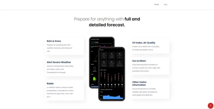 - Shows a 24/7 weather forecast and sends alerts