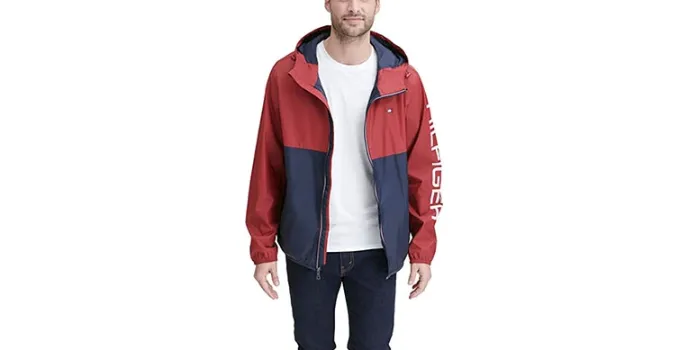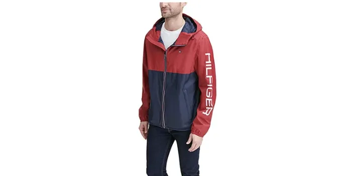 Tommy Hilfiger - Tricolor Zipper Closure Raincoat with an adjustable hood