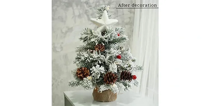 Are you looking for a mini Christmas tree that has one feat snow flock artificial Pine? Then you can choose the artificial Pine Christmas tree, which comes in the Topro Mini Christmas tree brand. It comes with branches that are made up of metal wires and can be sent to any shape as they are stout enough to hold heavy ornaments.