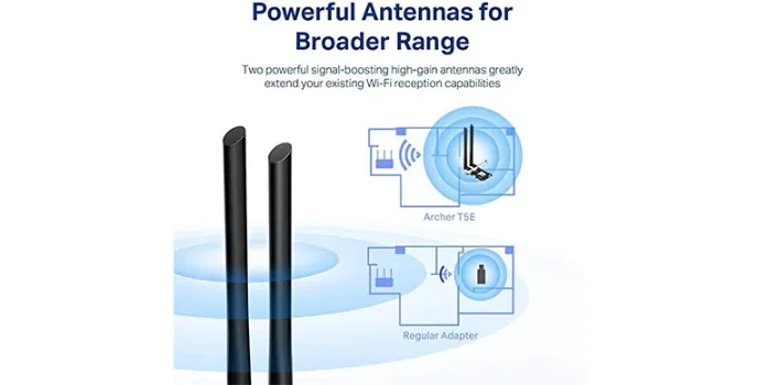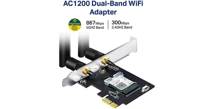 This product is a dual-band wifi adapter with 5GHZ and 2.4GHZ bands that help provide an uninterrupted internet connection to your devices. Also, the antennas to this card are rather high-gain, which results in greater wireless range and a stable network.